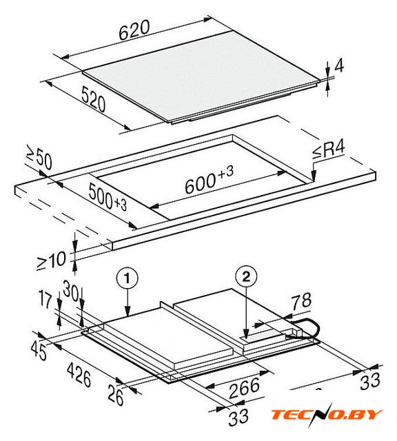 индукционная на 4 конфорки, cтеклокерамика, независимая установка, размеры (ШхГ): 83x51.5 см