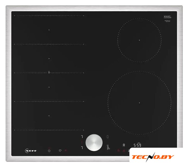 Варочная панель NEFF T66STE4L0 — это изысканность и современность в одном устройстве. Черное стеклокерамическое покрытие обеспечивает не только элегантный вид, но и простоту ухода за поверхностью. Дополнительный штрих изысканности придает стальная рамка, окружающая панель по периметру. Такое сочетание материалов гарантирует надежность и долговечность использования.