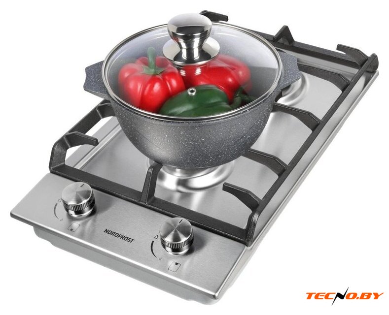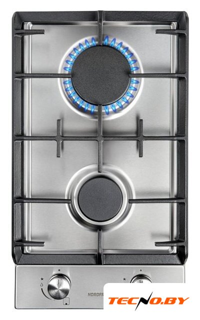 газовая на 2 конфорки, нержавеющая сталь, мощность: 4300 Вт, автоматический электроподжиг, газ-контроль, решетки: чугун, независимая установка, размеры (ШхГ): 31x51 см