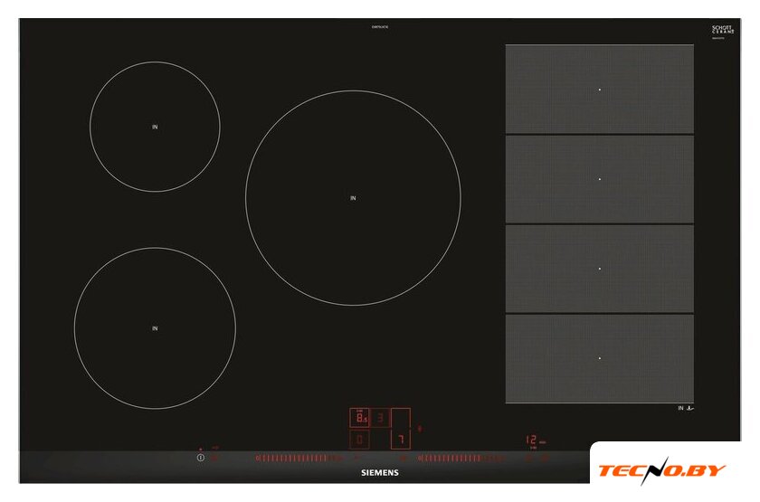 индукционная на 5 конфорок, cтеклокерамика, мощность: 7400 Вт, автоматика закипания, независимая установка, размеры (ШхГ): 83.4x52.7 см