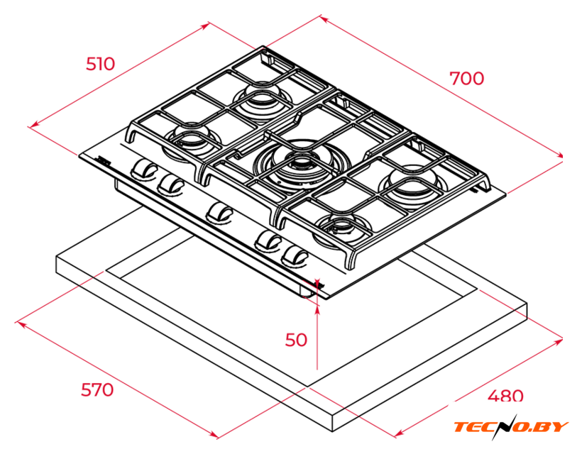 TEKA GZC 75330 XBN — это независимая варочная панель, что позволяет вам устанавливать её без привязки к расположению других кухонных устройств. С шириной 70 см и глубиной 51 см, она легко интегрируется в любую рабочую поверхность, требуя нишу для встраивания шириной 57 см и глубиной 48 см.