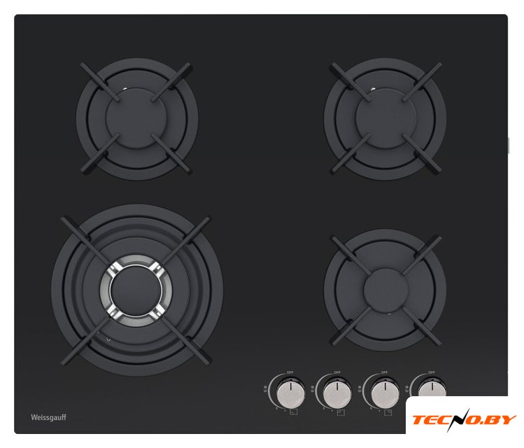 газовая на 4 конфорки, закаленное стекло, автоматический электроподжиг, газ-контроль, решетки: чугун, независимая установка