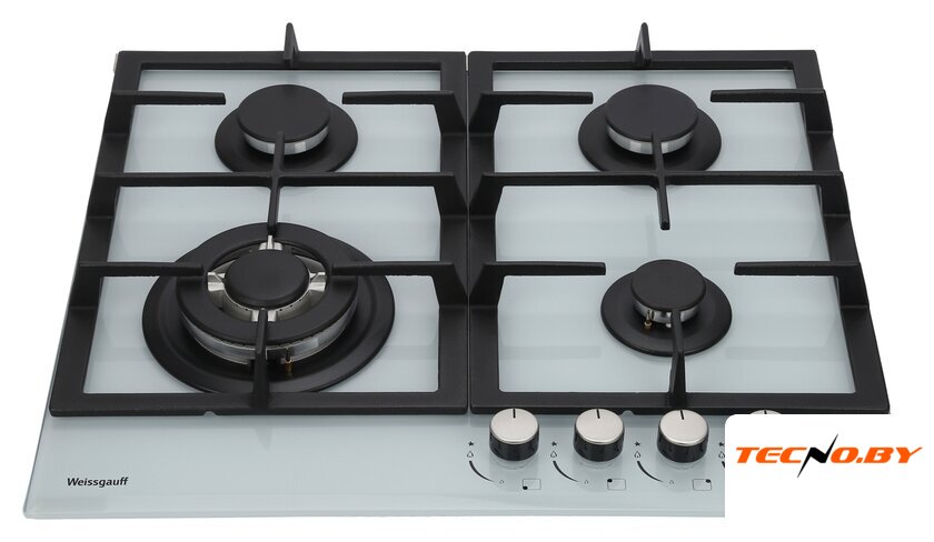газовая на 3 конфорки, закаленное стекло, мощность: 6500 Вт, автоматический электроподжиг, газ-контроль, решетки: чугун, независимая установка, размеры (ШхГ): 44x51 см