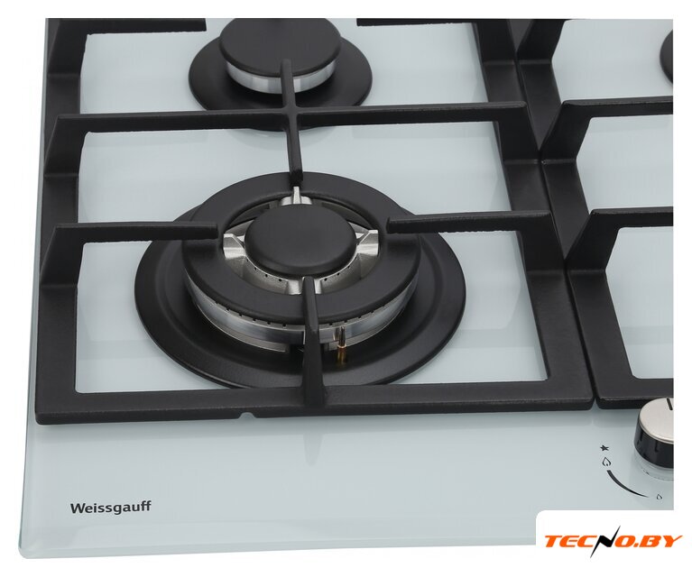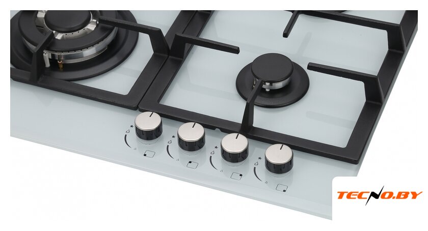 газовая на 4 конфорки, закаленное стекло, мощность: 7400 Вт, автоматический электроподжиг, газ-контроль, решетки: чугун