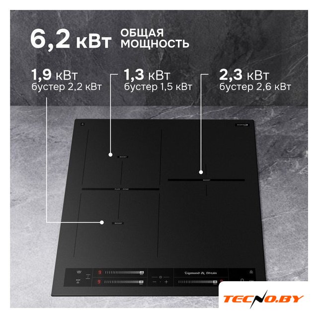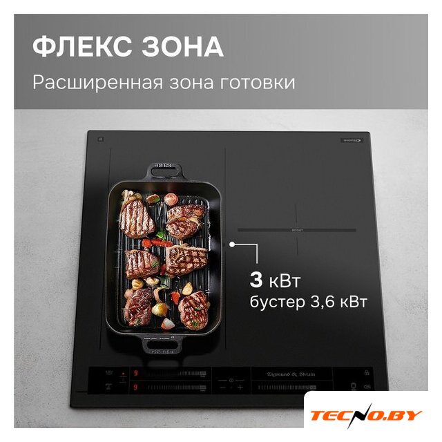 | Подробная информация о конфорках | Ближняя левая 180 мм, 1900/2200Дальняя левая 180 мм, 1300/1500Левая Flex-зона 180*380 мм, 3000/3600Дальняя правая 180 мм, 2300/2600 |