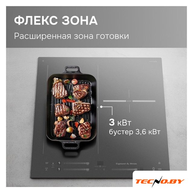 | Подробная информация о конфорках | Ближняя левая 180 мм, 1900/2200Дальняя левая 180 мм, 1300/1500Левая Flex-зона 180*380 мм, 3000/3600Дальняя правая 180 мм, 2300/2600 |