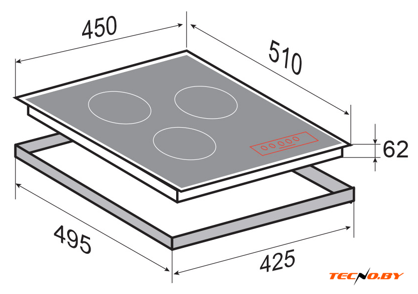 индукционная на 3 конфорки, cтеклокерамика, мощность: 5800 Вт, независимая установка, размеры (ШхГ): 45x52 см