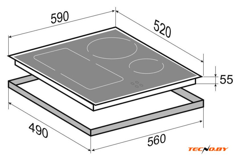 индукционная на 4 конфорки, cтеклокерамика, мощность: 7100 Вт, независимая установка, размеры (ШхГ): 59x52 см