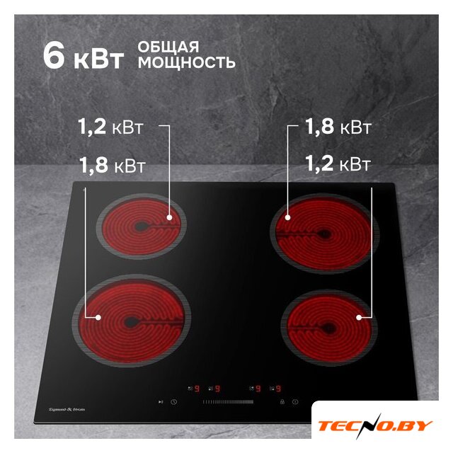| Подробная информация о конфорках | Ближняя левая 200 мм, 1800WДальняя левая 165 мм, 1200WДальняя правая 200 мм, 1800WБлижняя правая 165 мм, 1200W |
