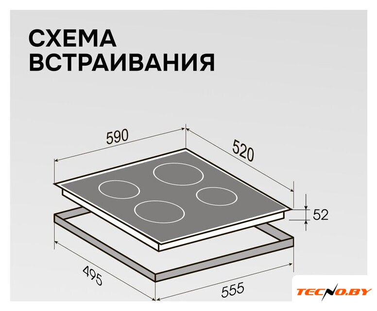 HiLight на 4 конфорки, cтеклокерамика, мощность: 6600 Вт, независимая установка, размеры (ШхГ): 59x52 см
