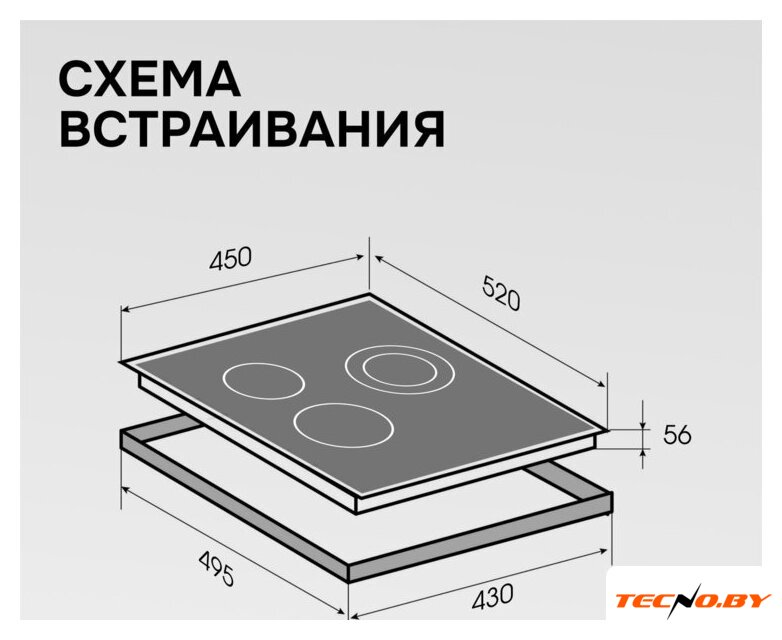 HiLight на 3 конфорки, cтеклокерамика, мощность: 4200 Вт, независимая установка, размеры (ШхГ): 45x52 см
