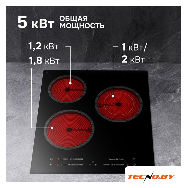 HiLight на 3 конфорки, cтеклокерамика, мощность: 5000 Вт, независимая установка, размеры (ШхГ): 45x52 см
