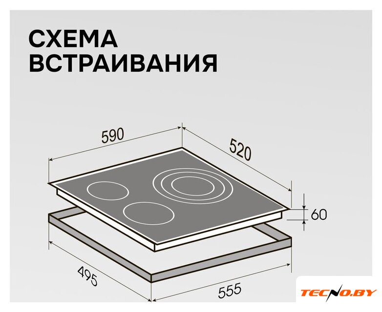 HiLight на 4 конфорки, cтеклокерамика, мощность: 6000 Вт, независимая установка, размеры (ШхГ): 58x51 см