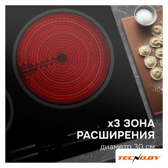 HiLight на 3 конфорки, cтеклокерамика, мощность: 5000 Вт, независимая установка, размеры (ШхГ): 45x52 см