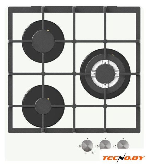газовая на 3 конфорки, закаленное стекло, мощность: 6400 Вт, автоматический электроподжиг, газ-контроль, решетки: чугун, размеры (ШхГ): 44x51 см