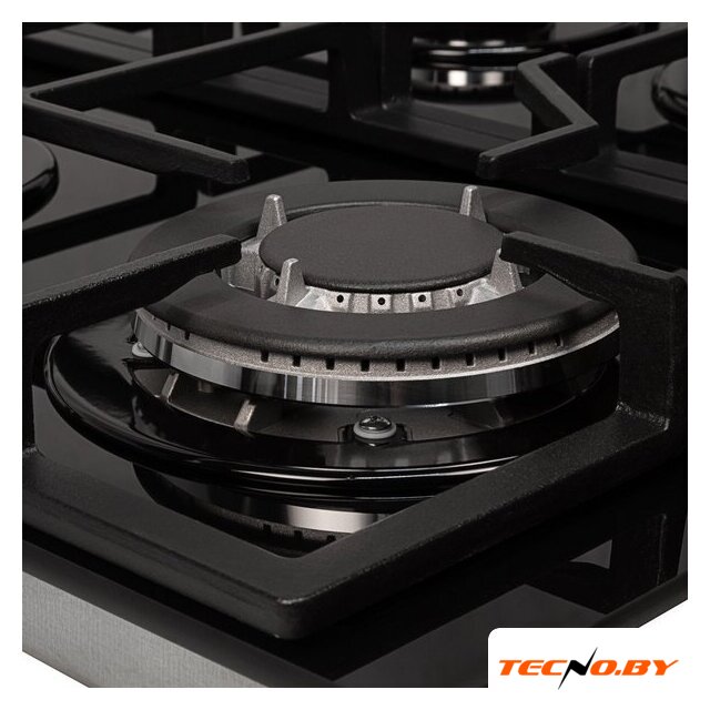 На панели расположены четыре газовые конфорки, включая мощную WOK-конфорку, что позволяет легко готовить блюда азиатской кухни и не только. Мощность конфорок распределена следующим образом: 3500 Вт для WOK и 1700/1700/1000 Вт для остальных зон. Чугунные решетки не только обеспечивают устойчивость посуды, но и равномерно распределяют тепло по поверхности.