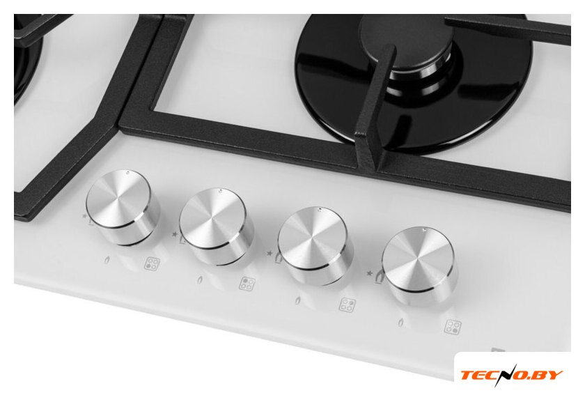 газовая на 4 конфорки, закаленное стекло, мощность: 9100 Вт, автоматический электроподжиг, газ-контроль, решетки: чугун, независимая установка, размеры (ШхГ): 59x51.5 см