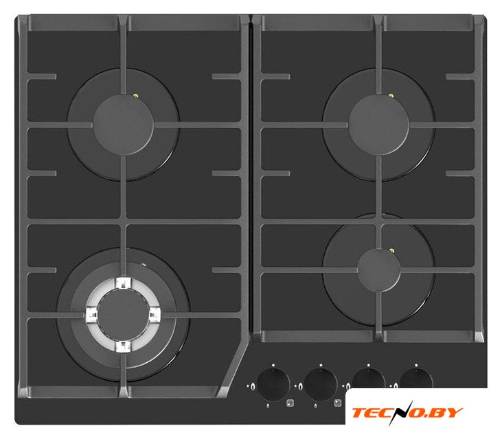 газовая на 4 конфорки, закаленное стекло, мощность: 8060 Вт, автоматический электроподжиг, газ-контроль, решетки: чугун, независимая установка, размеры (ШхГ): 58.4x51 см