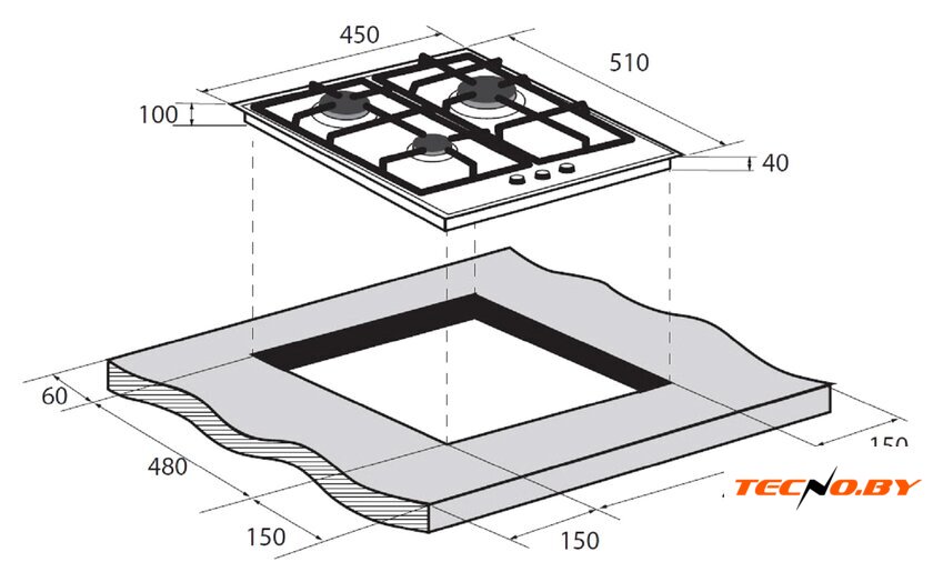 газовая на 4 конфорки, закаленное стекло, мощность: 8200 Вт, автоматический электроподжиг, газ-контроль, решетки: чугун, независимая установка, размеры (ШхГ): 59x51.5 см