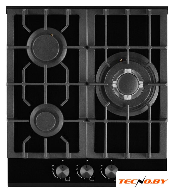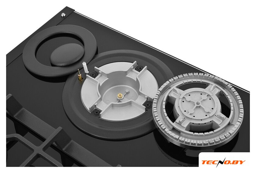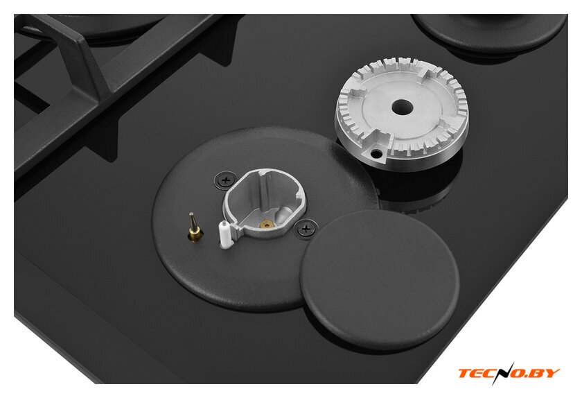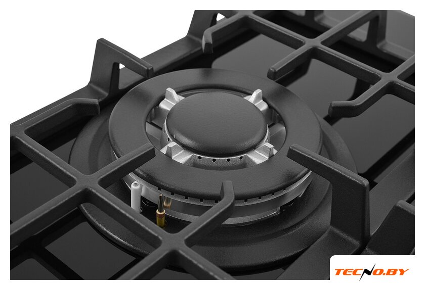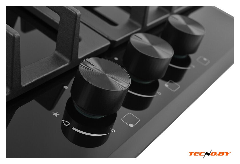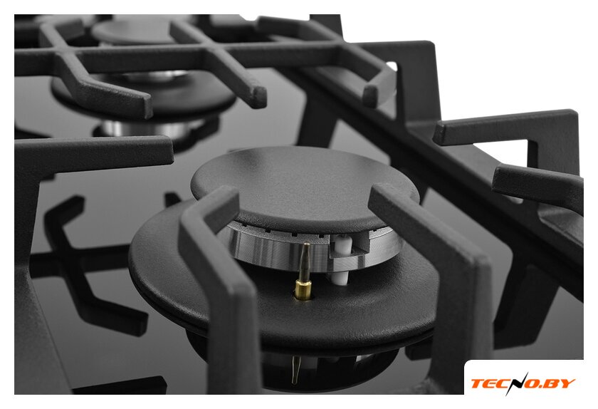 газовая на 4 конфорки, закаленное стекло, мощность: 8300 Вт, автоматический электроподжиг, газ-контроль, решетки: чугун
