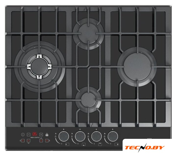 газовая на 4 конфорки, закаленное стекло, мощность: 8800 Вт, автоматический электроподжиг, газ-контроль, решетки: чугун, независимая установка, размеры (ШхГ): 58x50 см
