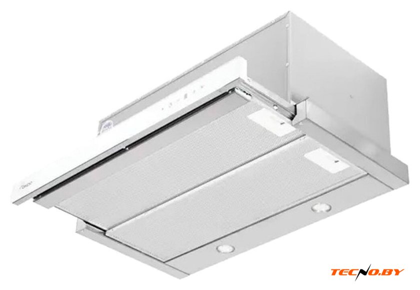 конструкция скрытая, монтаж для встраивания, ширина 60 см, управление поворотный переключатель, производительность мотора 1200 м³/ч, цвет белый