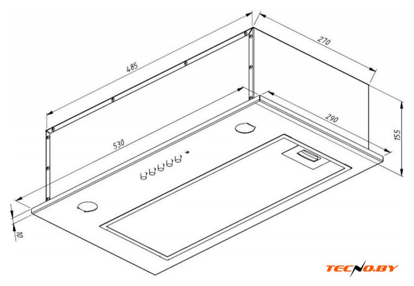 Две встроенные светодиодные лампы мощностью 4 Вт обеспечивают равномерное освещение рабочей зоны, создавая комфортные условия для готовки. Компактные габариты устройства (ширина 53 см, глубина 29 см и высота 15.5 см) позволяют с легкостью встроить вытяжку даже в небольшие кухонные пространства. Диаметр воздуховода составляет 120 мм, что обеспечивает стабильное и эффективное вентилирование.