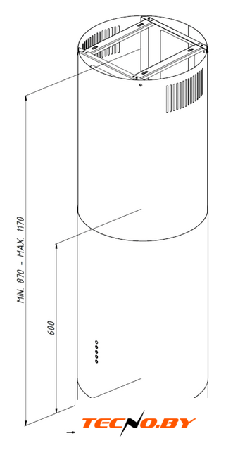 С габаритами всега 40x40 см и высотой до 117 см, вытяжка станет ненавязчивой частью вашего интерьера. Встроенный алюминиевый жироулавливающий фильтр обеспечивает легкость очистки и минимальное обслуживание, который не требует тщательного ухода.