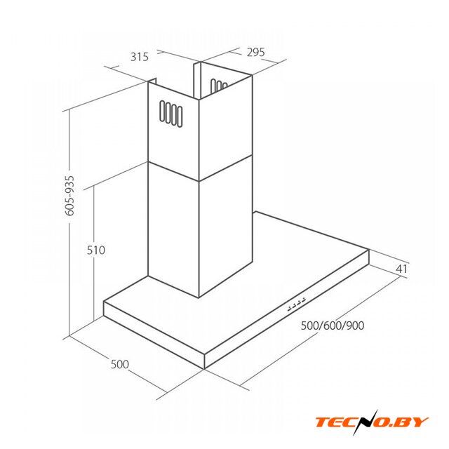 конструкция Т-образная, монтаж настенный, ширина 60 см, управление механическое/поворотный переключатель, производительность мотора 1050 м³/ч, цвет черный