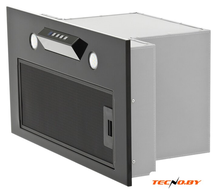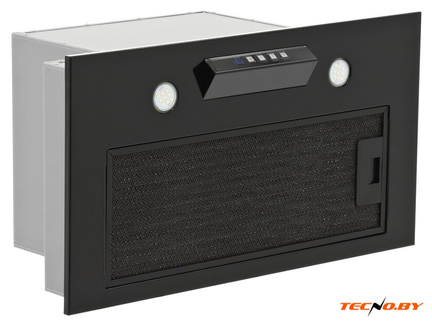 конструкция скрытая, монтаж для встраивания, ширина 53 см, управление сенсорное, производительность мотора 1080 м³/ч, цвет черный