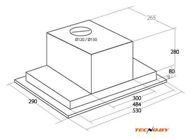 При ширине 53 см, глубине 29 см и высоте 28 см, эта модель вытяжки отличается компактностью и эргономичностью. Идеальная для небольших кухонь, она требует минимум места для установки, а диаметр воздуховода 150 мм обеспечивает её эффективность.