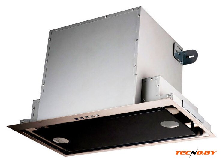 конструкция коробчатая, монтаж настенный, ширина 59 см, управление электронное/кнопочное, производительность мотора 700 м³/ч, цвет черный