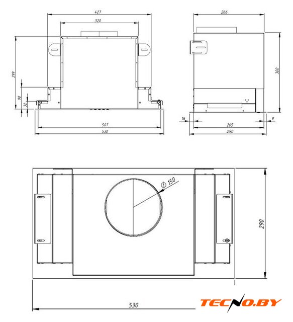 С шириной 73 см, глубиной 29 см и высотой 30 см эта вытяжка не займет много места, но при этом будет выполнять свои функции на высшем уровне. Диаметр воздуховода составляет 150 мм, что также способствует эффективной работе системы очистки воздуха.