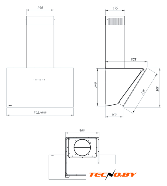 конструкция наклонная, монтаж настенный, ширина 59.5 см, управление сенсорное, производительность мотора 1000 м³/ч, цвет черный