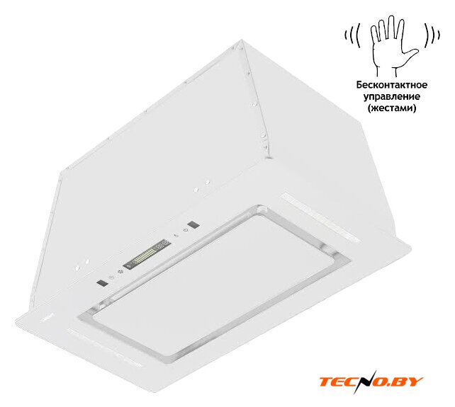 конструкция скрытая, монтаж для встраивания, ширина 52 см, управление сенсорное/жестами, производительность мотора 1000 м³/ч, цвет белый