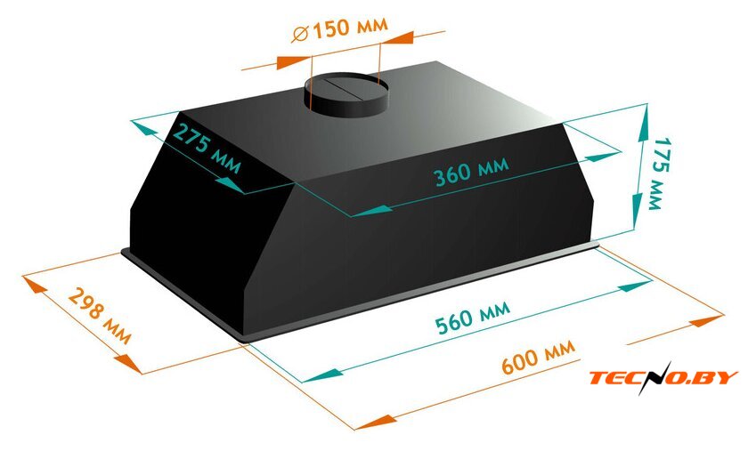 конструкция телескопическая, монтаж для встраивания, ширина 50 см, управление механическое/кнопочное, производительность мотора 600 м³/ч, цвет черный
