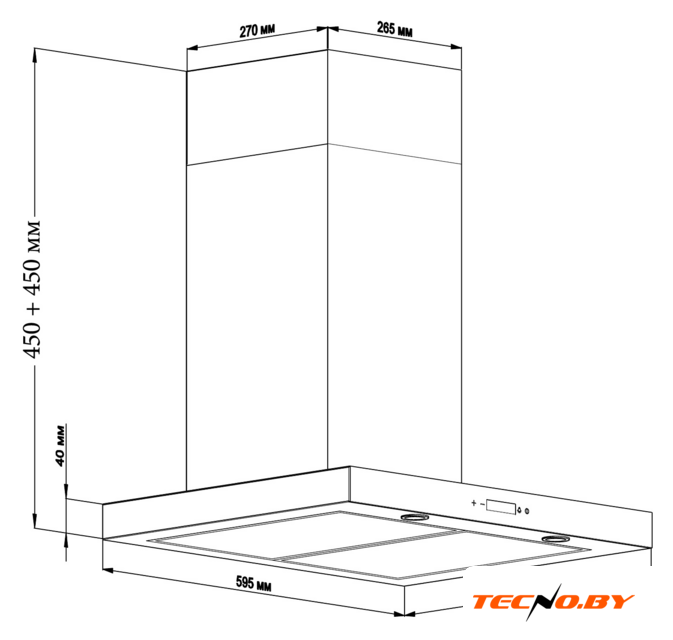 конструкция наклонная, монтаж настенный, управление сенсорное, производительность мотора 1000 м³/ч, ширина 90 см