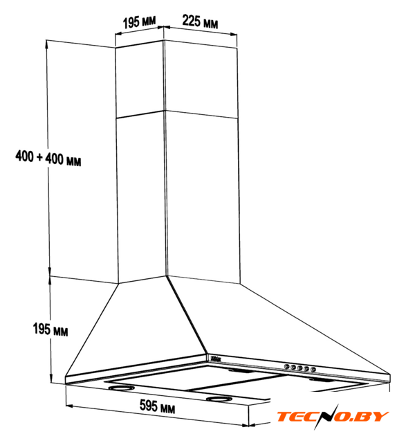 конструкция купольная, монтаж настенный, управление механическое, производительность мотора 600 м³/ч, ширина 49.5 см