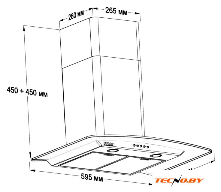 конструкция наклонная, монтаж настенный, ширина 59.7 см, управление сенсорное, производительность мотора 1020 м³/ч, цвет черный