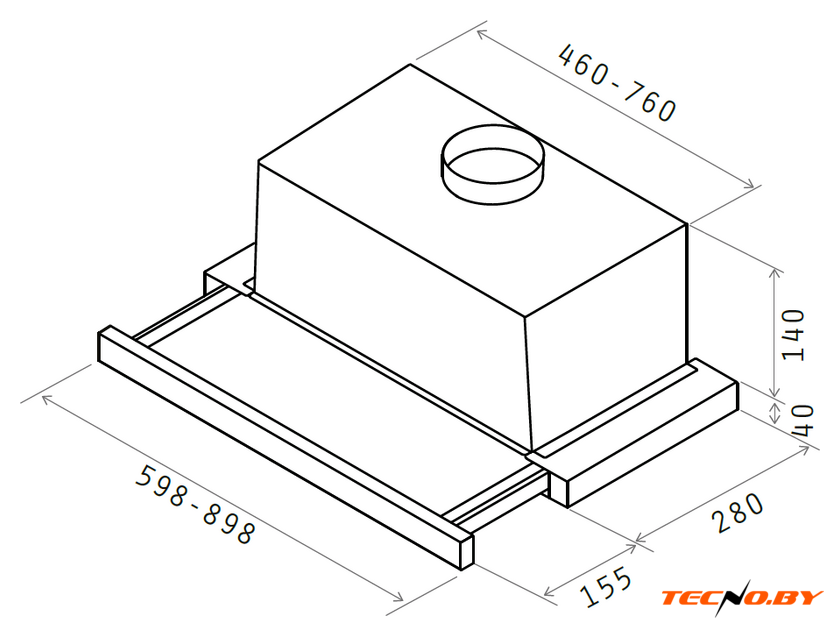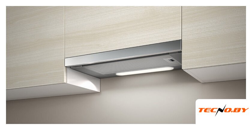 конструкция скрытая, монтаж для встраивания, ширина 59.8 см, управление механическое/кнопочное, производительность мотора 850 м³/ч, цвет белый