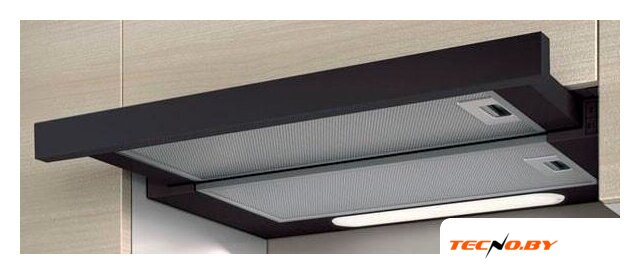 конструкция плоская, монтаж настенный, ширина 59.5 см, управление механическое/поворотный переключатель, производительность мотора 1000 м³/ч, цвет черный