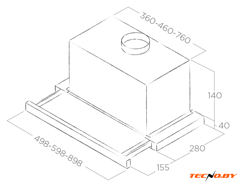конструкция скрытая, монтаж для встраивания, ширина 50 см, управление механическое/кнопочное, производительность вытяжки 1000 м³/ч, цвет нержавеющая сталь