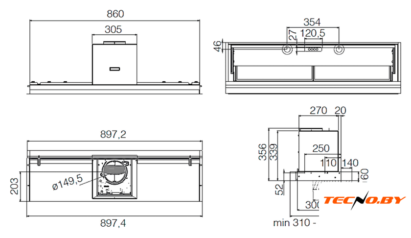 | Минимальная производительность отвода | 240 куб. м/ч |