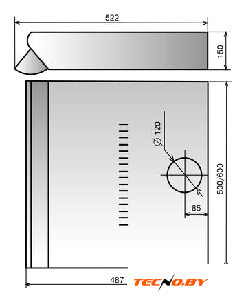 конструкция плоская, монтаж настенный, ширина 49.5 см, управление механическое/кнопочное, производительность вытяжки 460 м³/ч, производительность мотора 350 м³/ч, цвет нержавеющая сталь
