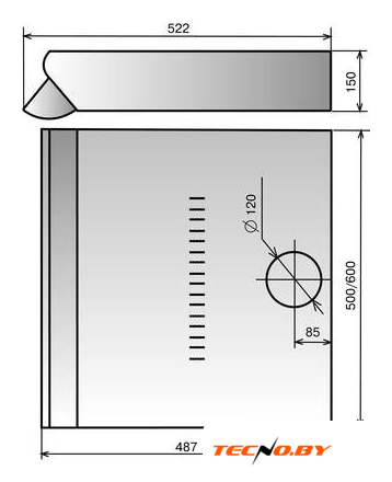 конструкция плоская, монтаж настенный, ширина 49.5 см, управление механическое/кнопочное, производительность вытяжки 460 м³/ч, производительность мотора 350 м³/ч, цвет нержавеющая сталь