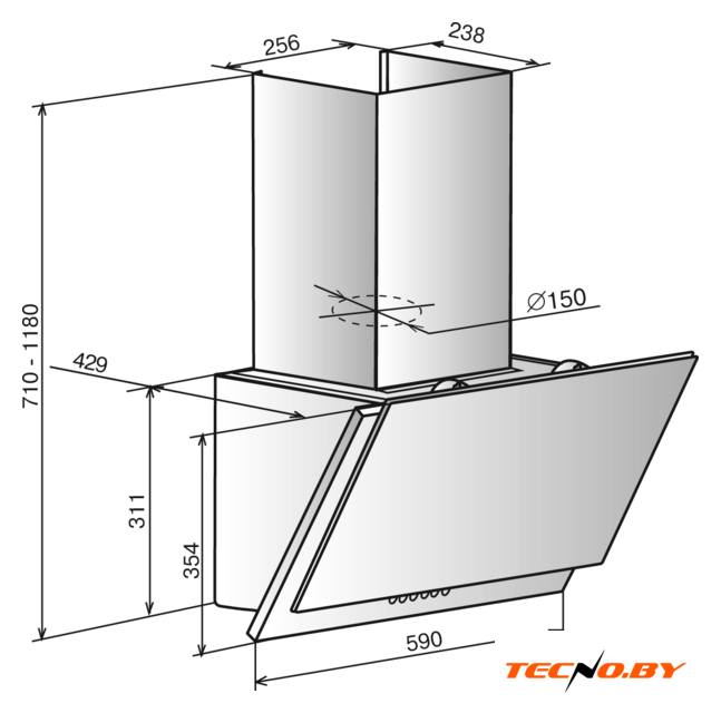 При ширине 59 см и глубине 42.9 см, вытяжка Elikor Жемчуг идеально подойдет для размещения над стандартной плитой. Ее высота варьируется от 71 до 118 см с декоративным коробом, позволяя гибкость в установке. Диаметр воздуховода составляет 150 мм, что обеспечивает надежную вентиляцию.