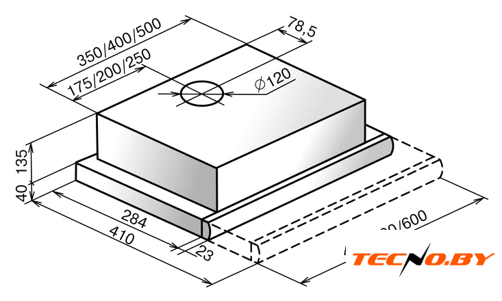 конструкция телескопическая, монтаж для встраивания, управление механическое/кнопочное, производительность мотора 400 м³/ч, ширина 50 см