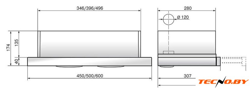 конструкция скрытая, монтаж для встраивания, ширина 60 см, управление механическое/кнопочное, производительность мотора 850 м³/ч, цвет белый