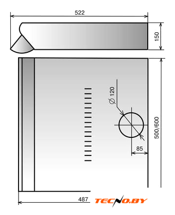 Вытяжка имеет компактные габариты: ширина - 60 см, глубина - 52.2 см (с козырьком), и высота - 15 см, что обеспечивает легкость и простоту установки в стандартные кухонные пространства. Ее вес составляет всего 6.7 кг, а диаметр воздуховода - 120 мм, что делает установку еще более простой и удобной.
