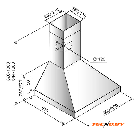 Компактные размеры вытяжки – ширина 59 см, глубина 50 см и регулируемая высота до 100 см с коробом – позволяют легко вписать устройство в различные кухонные планировки. Вес в 8 кг упрощает монтаж и позволяет без труда перемещать и устанавливать вытяжку в нужное место. Диаметр воздуховода составляет 120 мм, что соответствует стандартам и обеспечивает эффективное отведение воздуха.